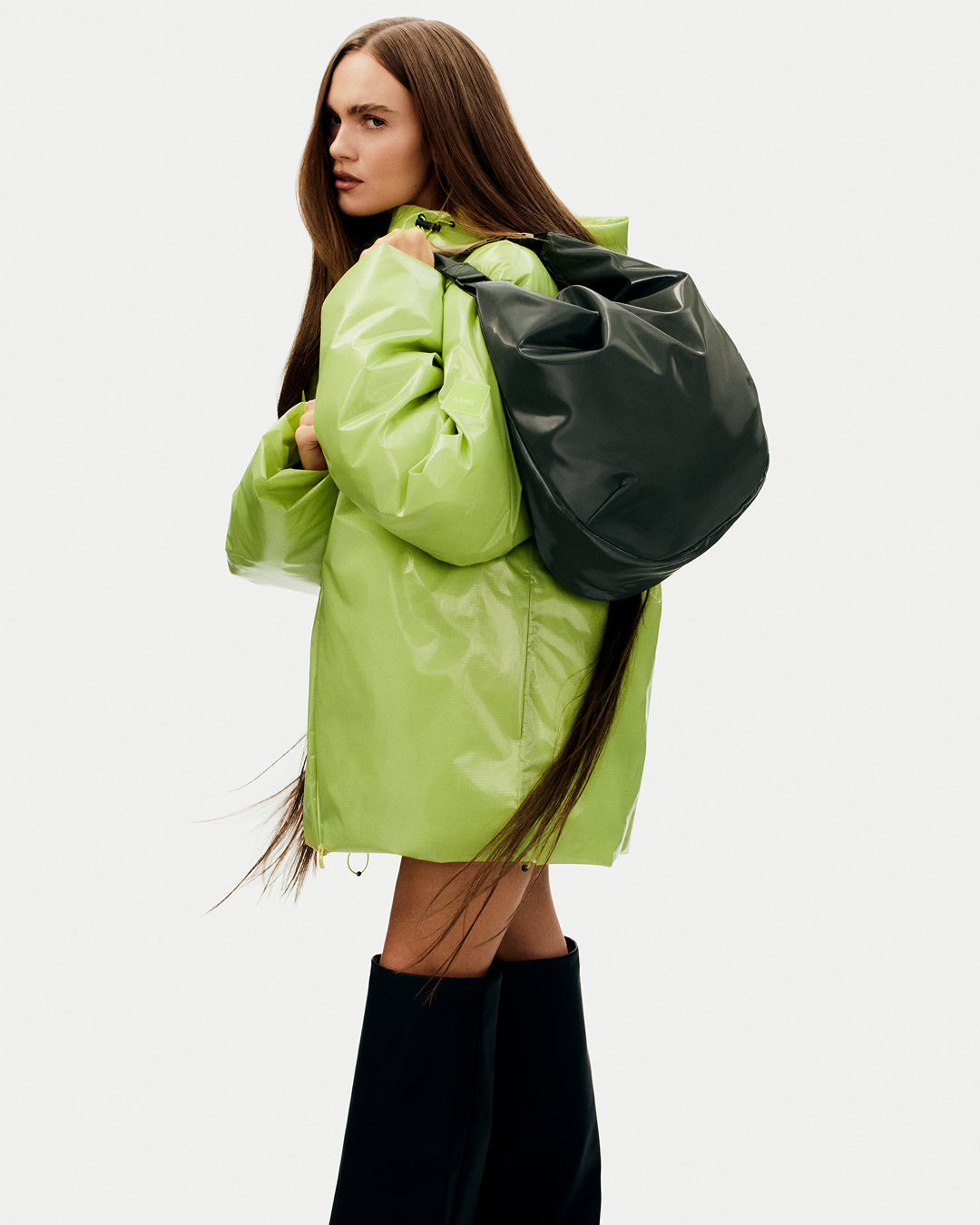 This is what happens when a multi-hyphenate creative has full access to the Rains archive—and full creative freedom to style the Valera Bag. Veneda Carter explores exaggerated silhouettes and textures, pairing her seasonal Valera favorites with our latest AW25 designs.