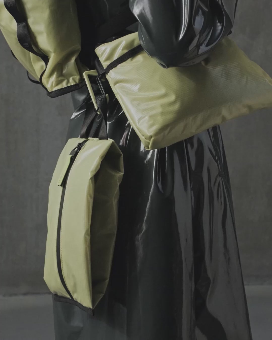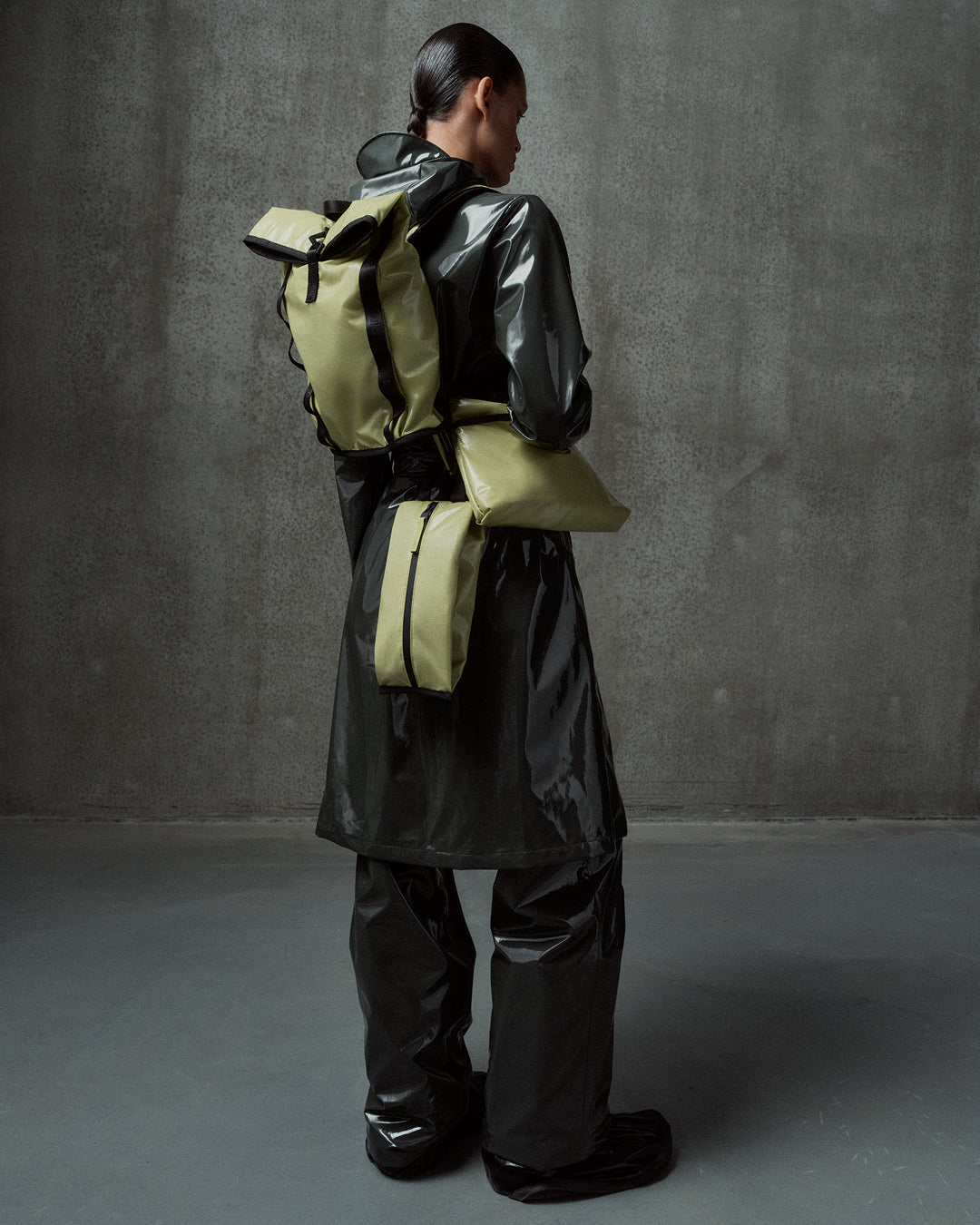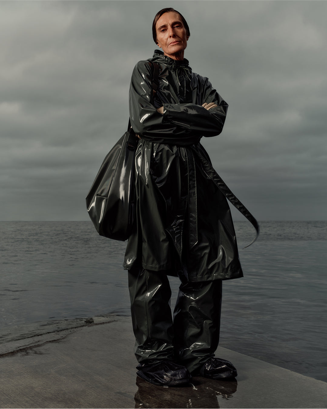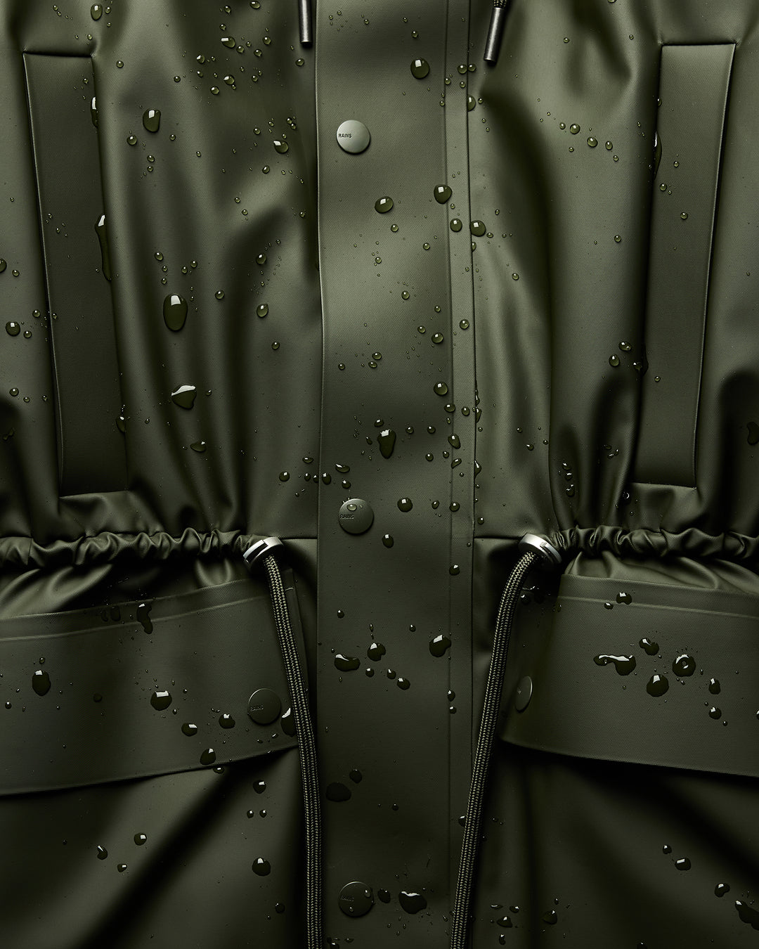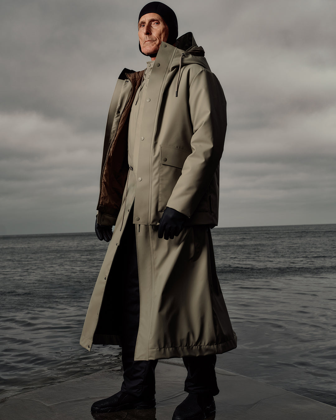 This design is characterized by its length and technical 3L fabric. The A-line shape becomes gradually exaggerated, adding dimension and utility to your seasonal looks.