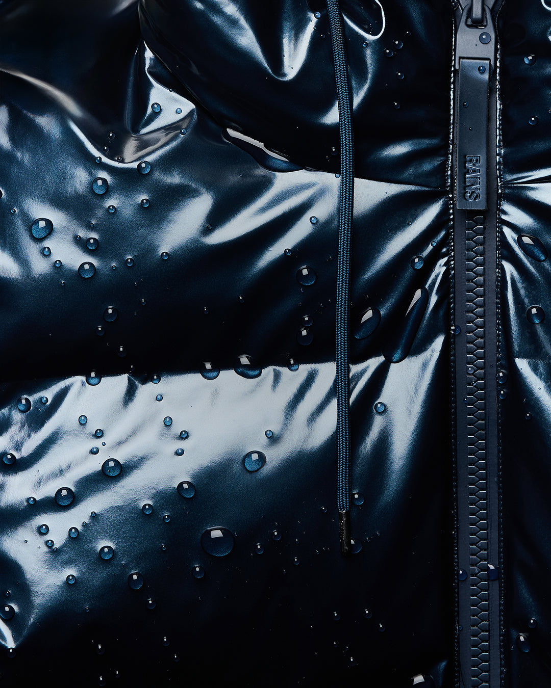Signature puffer chambers fused with an urban silhouette. Finished with an exaggerated puffer collar to elevate and protect. Details include an asymmetrical zip closure, fleece-lined zip pockets, and expressive colorways.