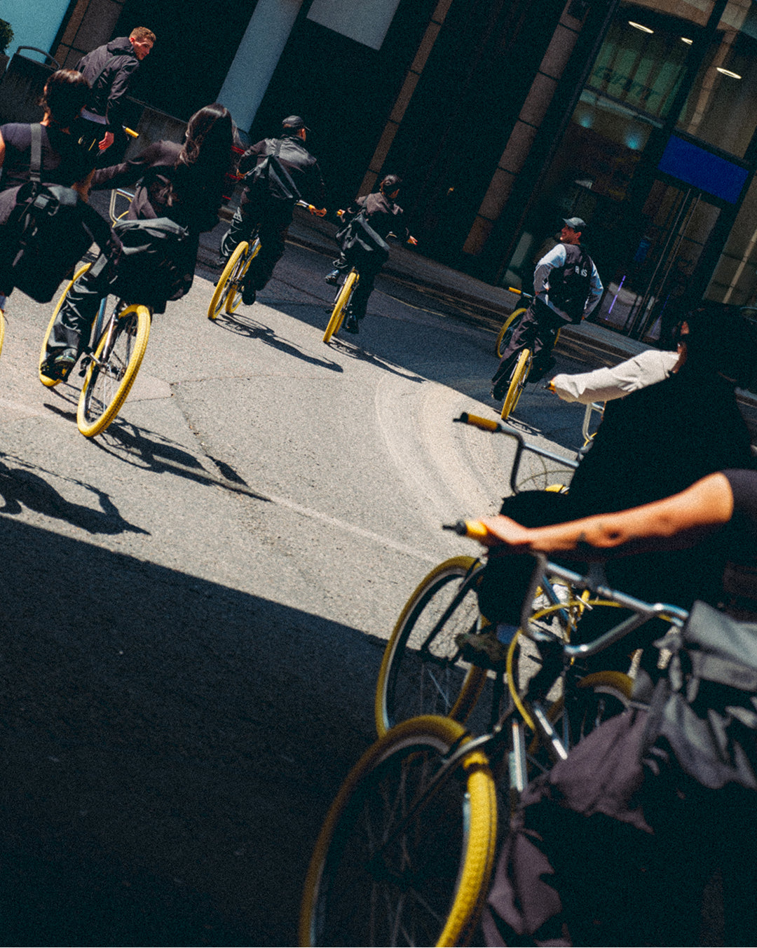 Yellow wheels took over central London as the Rains bikes made their global debut. The London-exclusive chrome bike was hard to miss as 20 riders weaved their way through the city, from Shoreditch to Embankment.