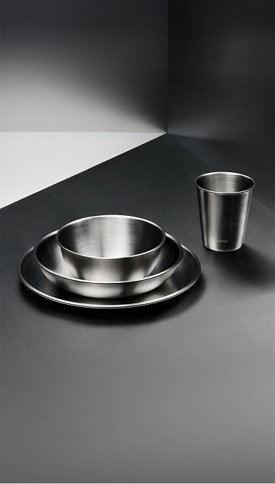 Brushed steel essentials with a timeless, industrial aesthetic. Designed to be used at home and when you're away.