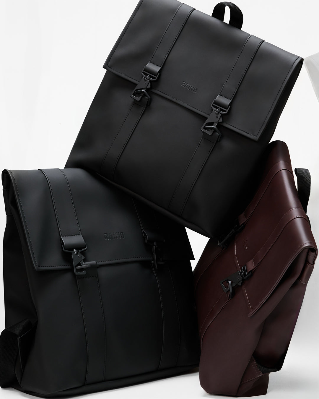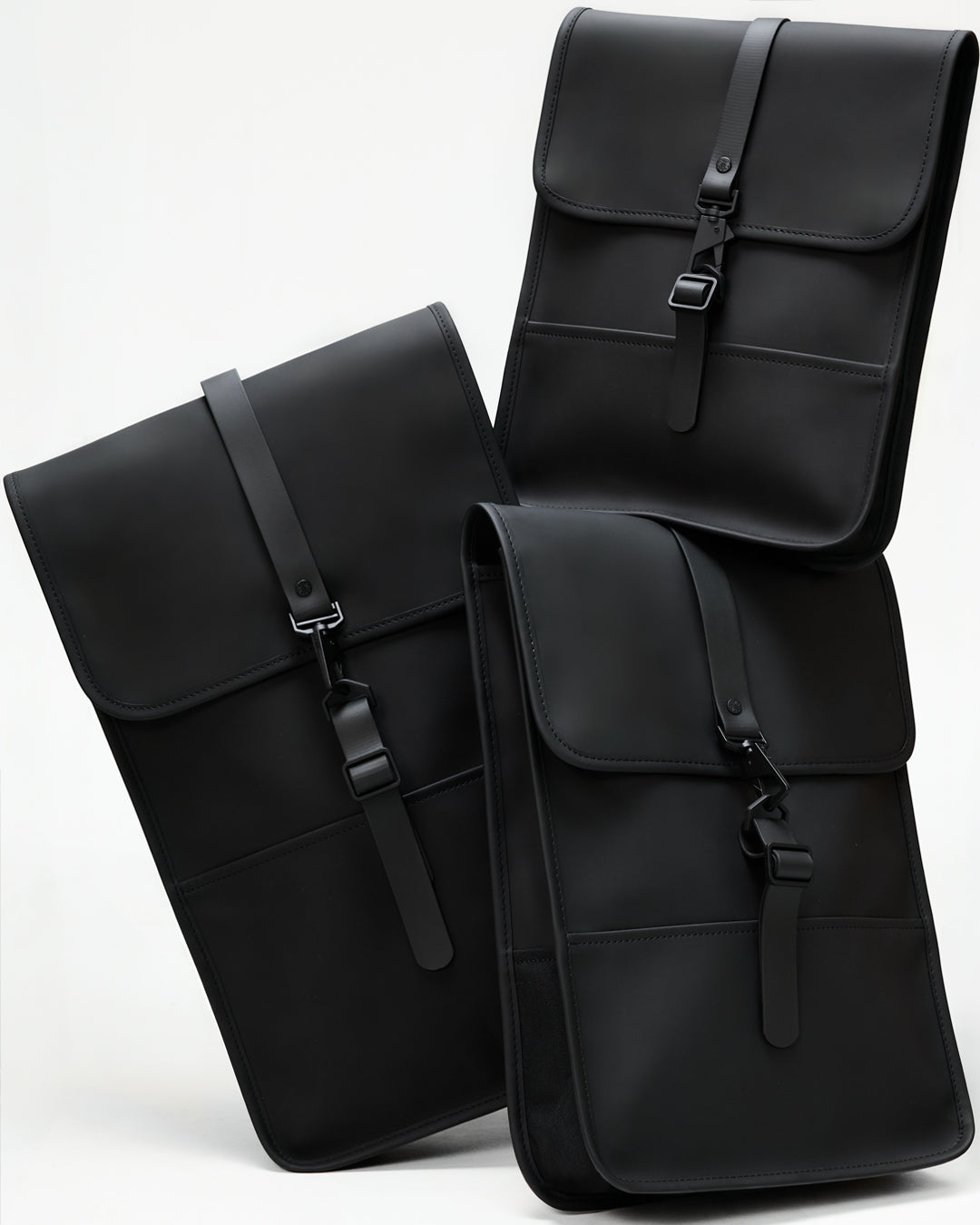 Our designers have crafted backpacks large and small, spacious and sleek, curved and structured. One thing all styles have in common: an understated silhouette. Rains’ signature neo-Scandinavian minimalism ensures versatility. Always.