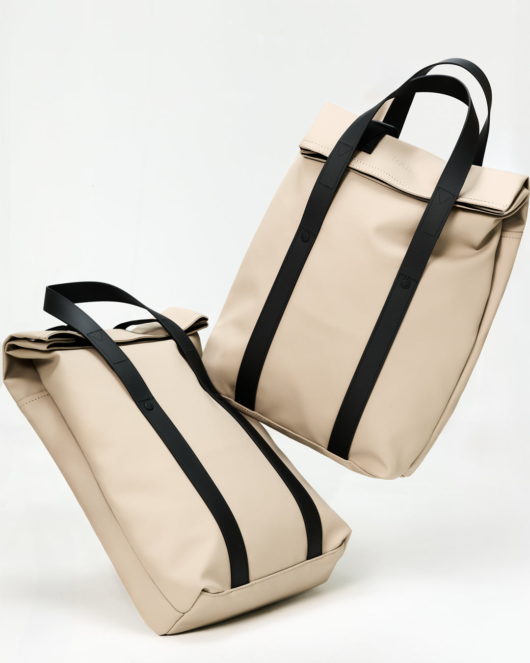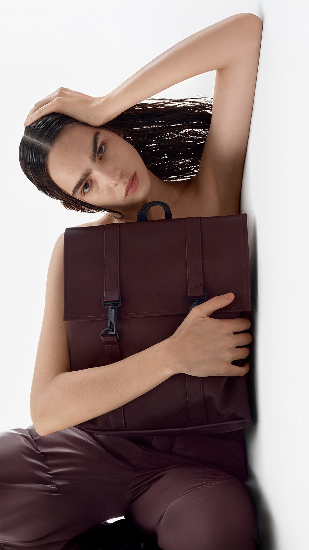 The iconic silhouette, clean, easy-to-wear and always contemporary. Rains’ first backpack design features a squared shape and minimal embellishments. Inside, you’ll find a spacious compartment with room for up to a 15” laptop.