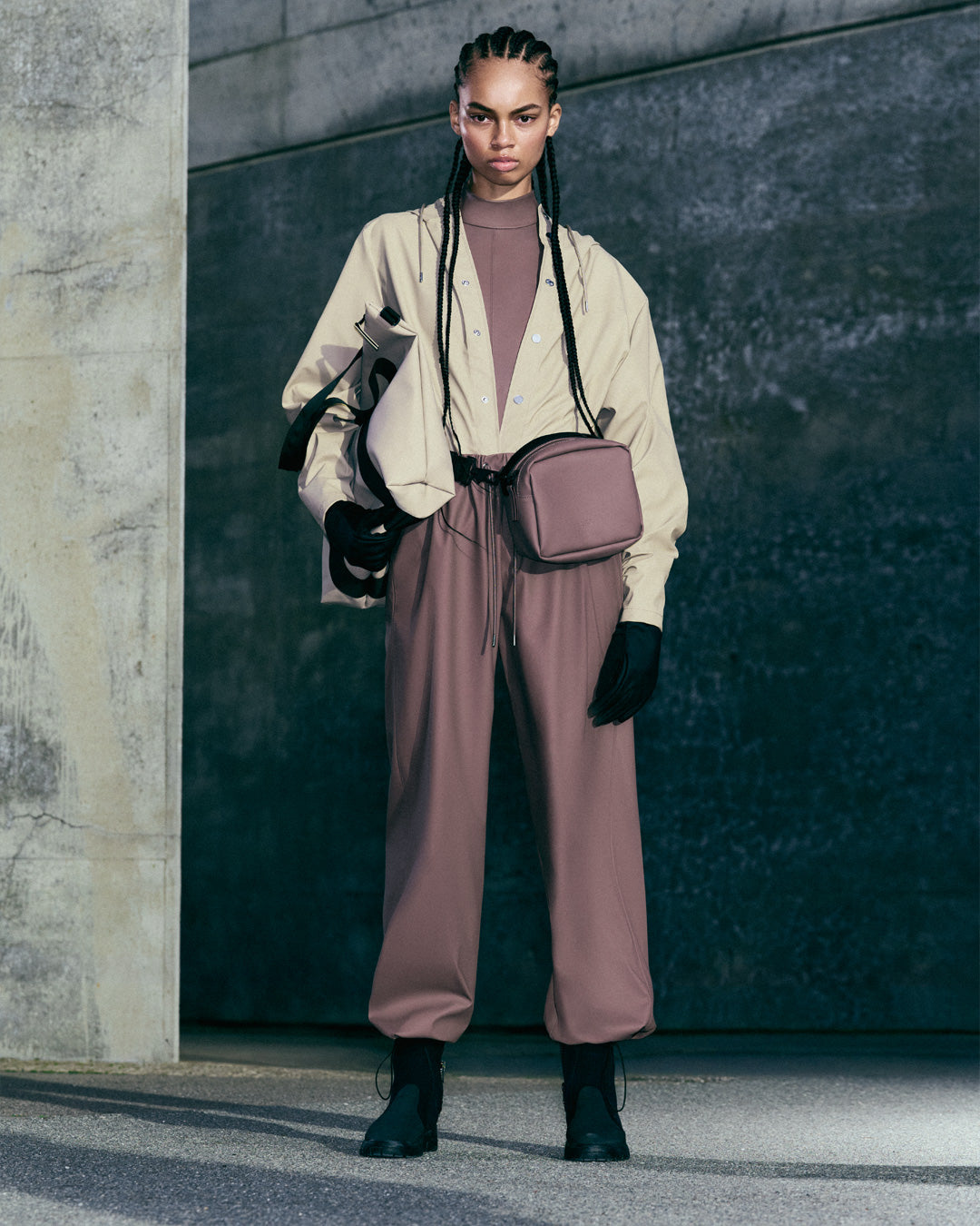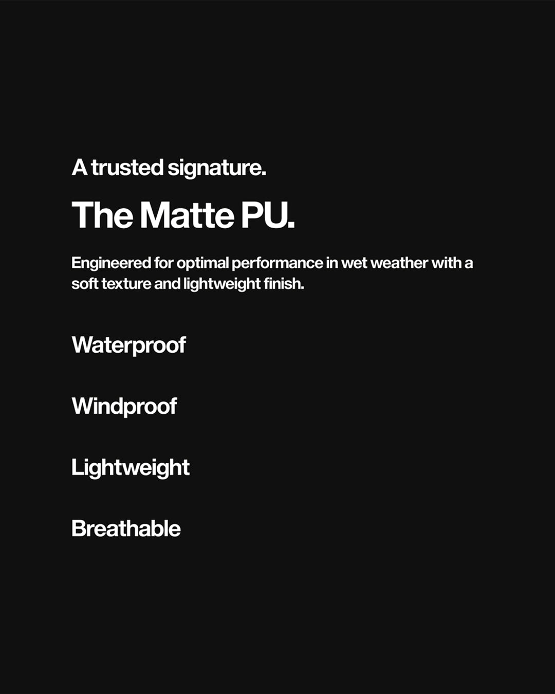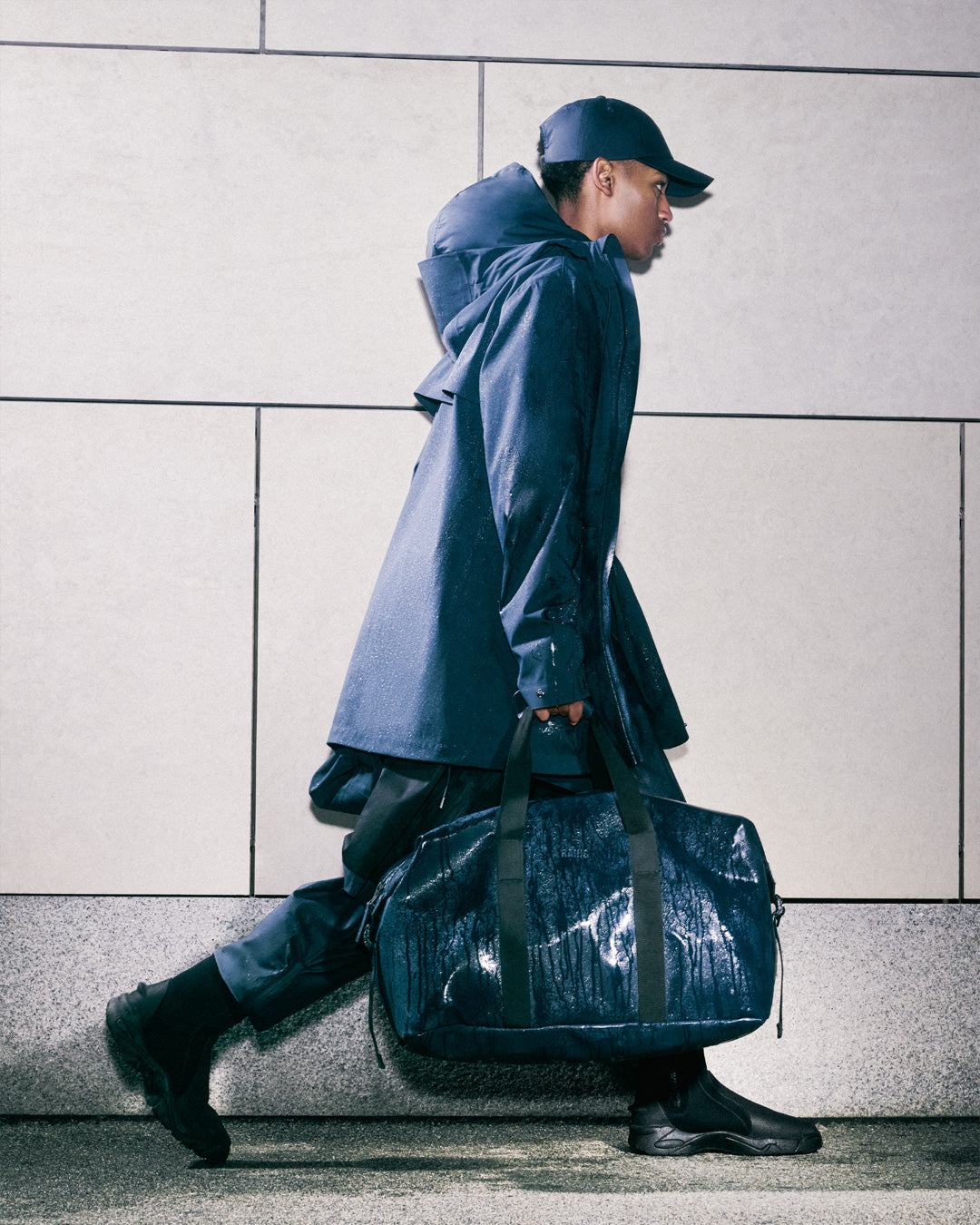 The elements are a source of torrential energy. City streets washed with rain inform the palette and performance for our essential collections.
